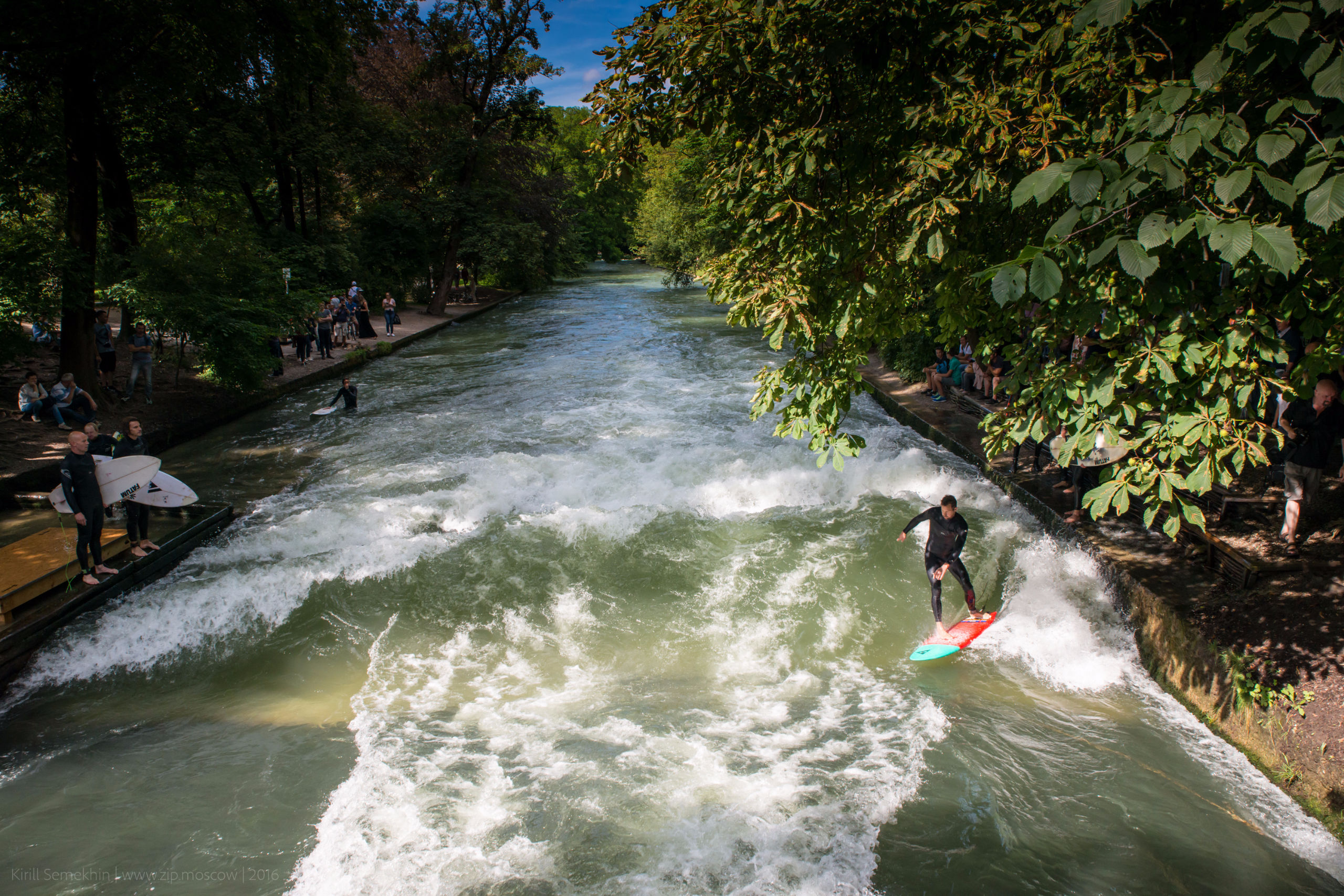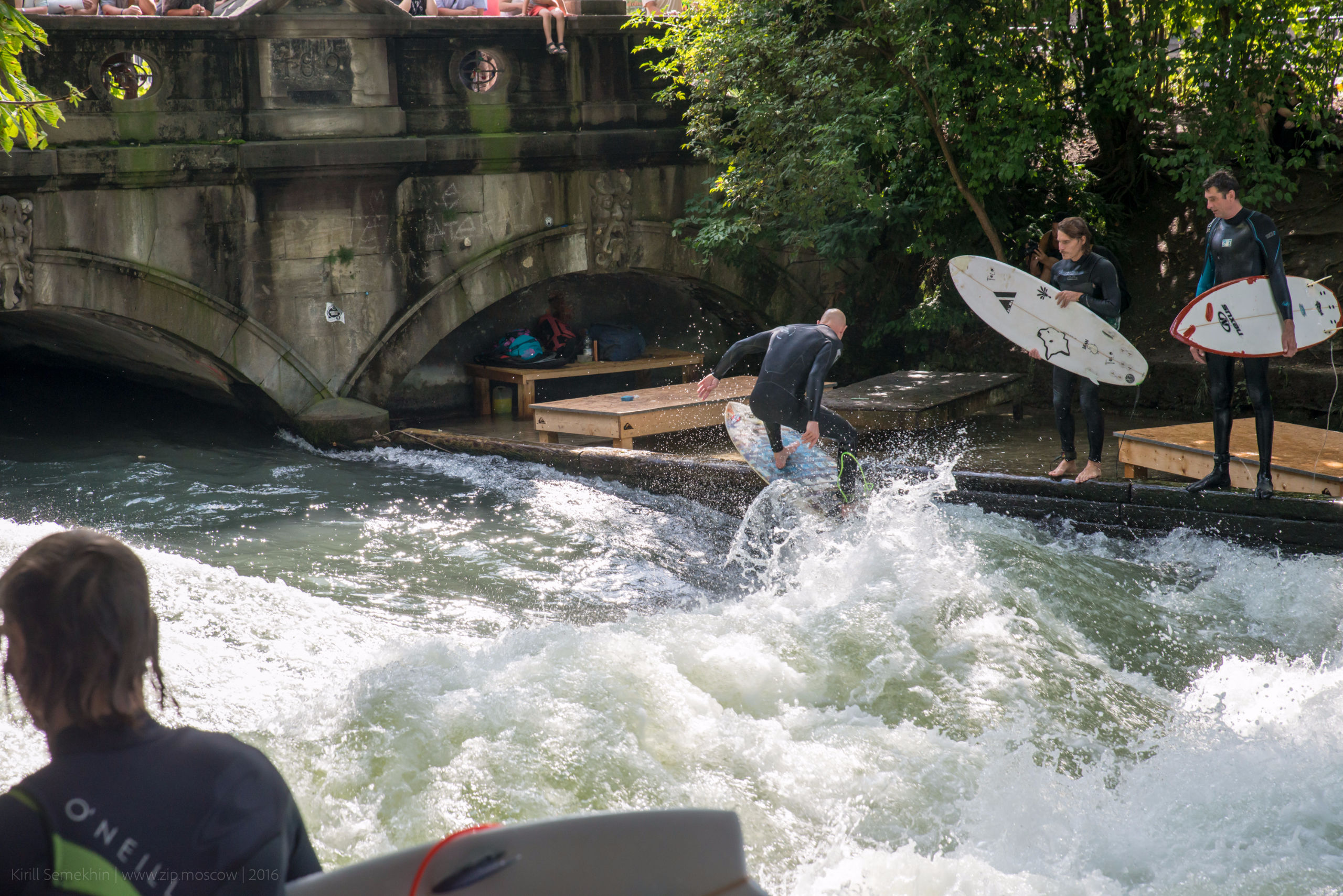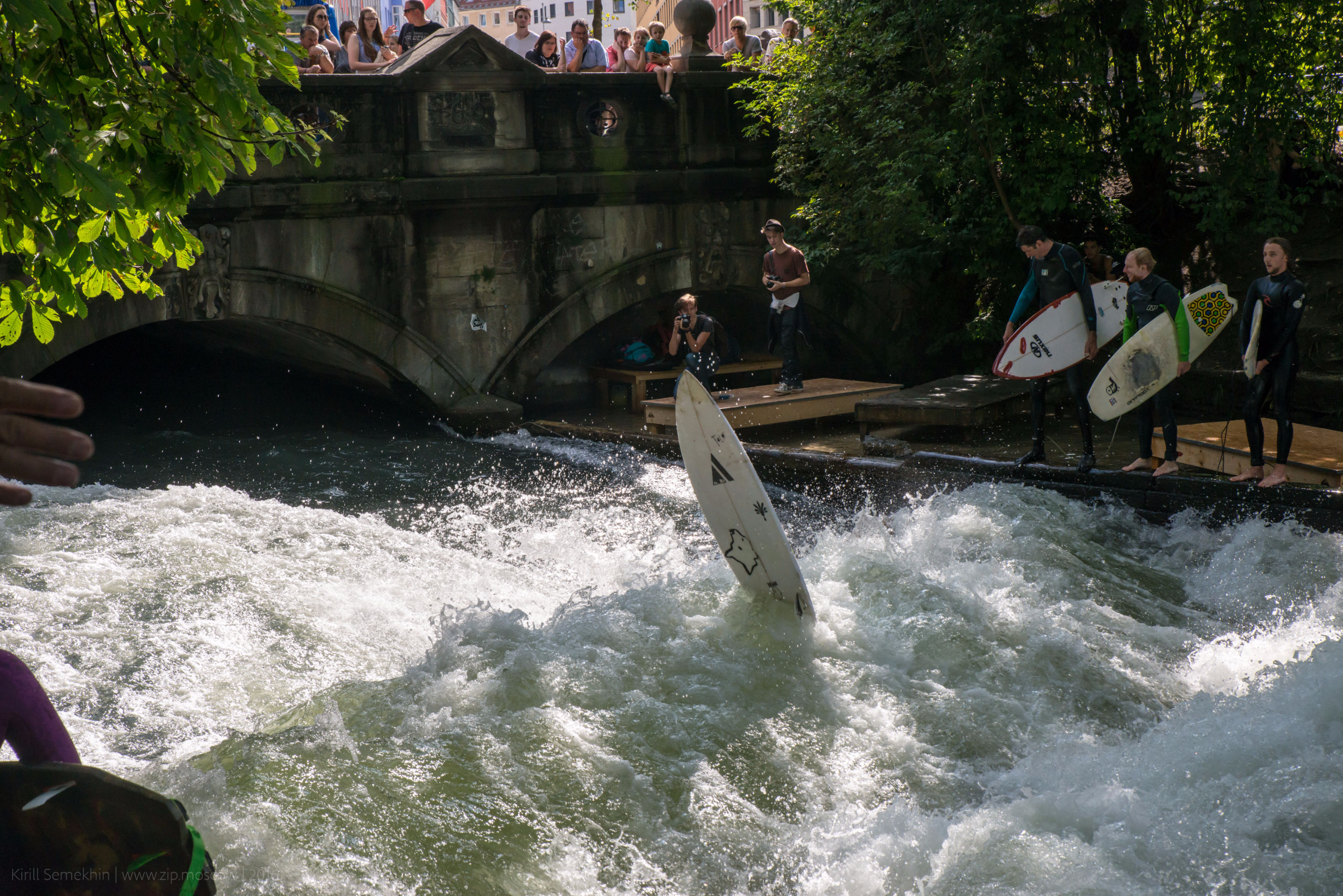 Т.к. течение очень быстрое — то ребята благодаря тому, что закрепили на дне специальную конструкцию получили отличную стоячую волну. Высотой около метра. Сейчас не могу найти источник, но ранее, я читал, что власти города специально перевели этот ручей с баланса Федеральной земли Баварии на баланс города, приняли какие то поправки и теперь там «каталка» легально! А могли б разогнать бы бездельников, как например…