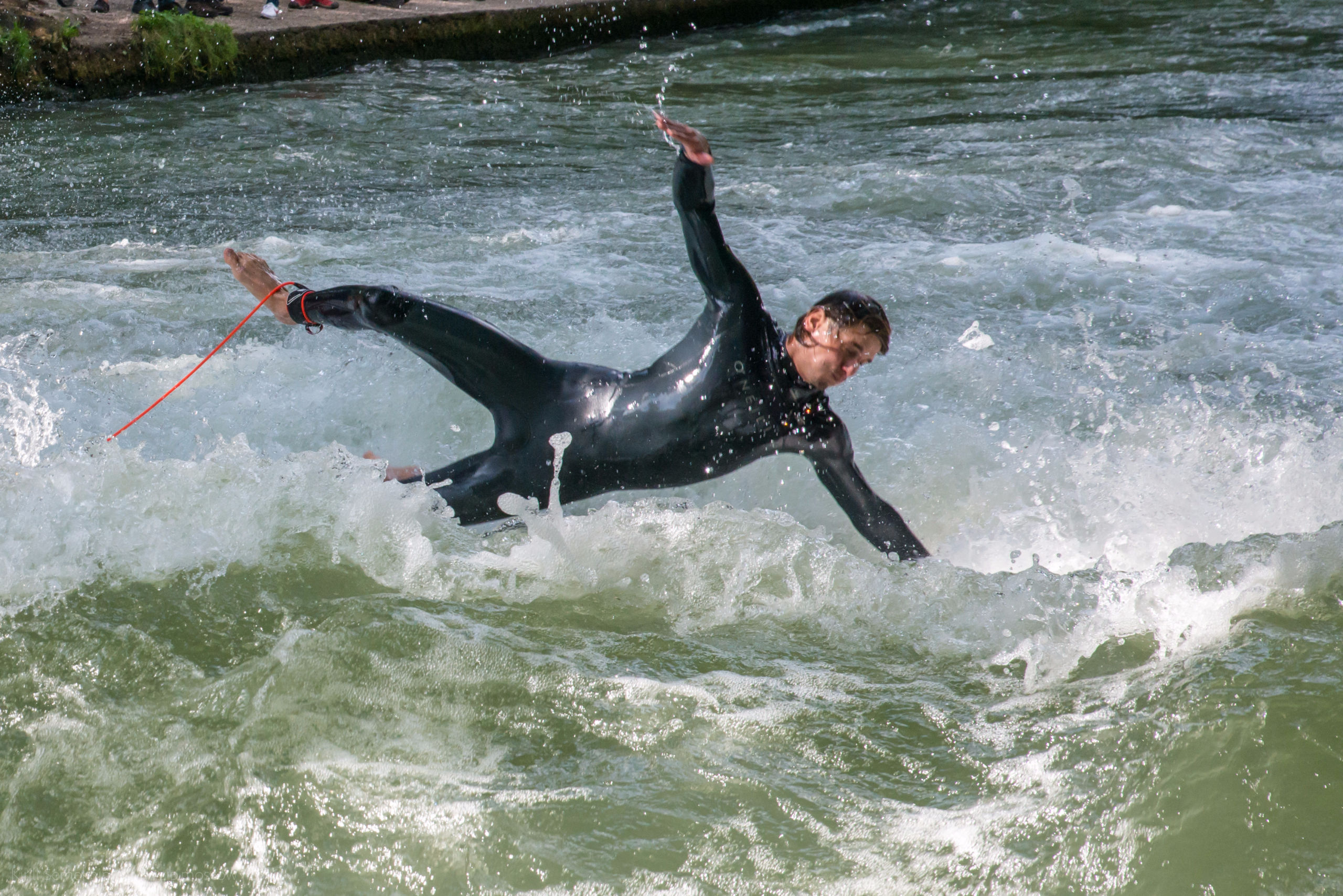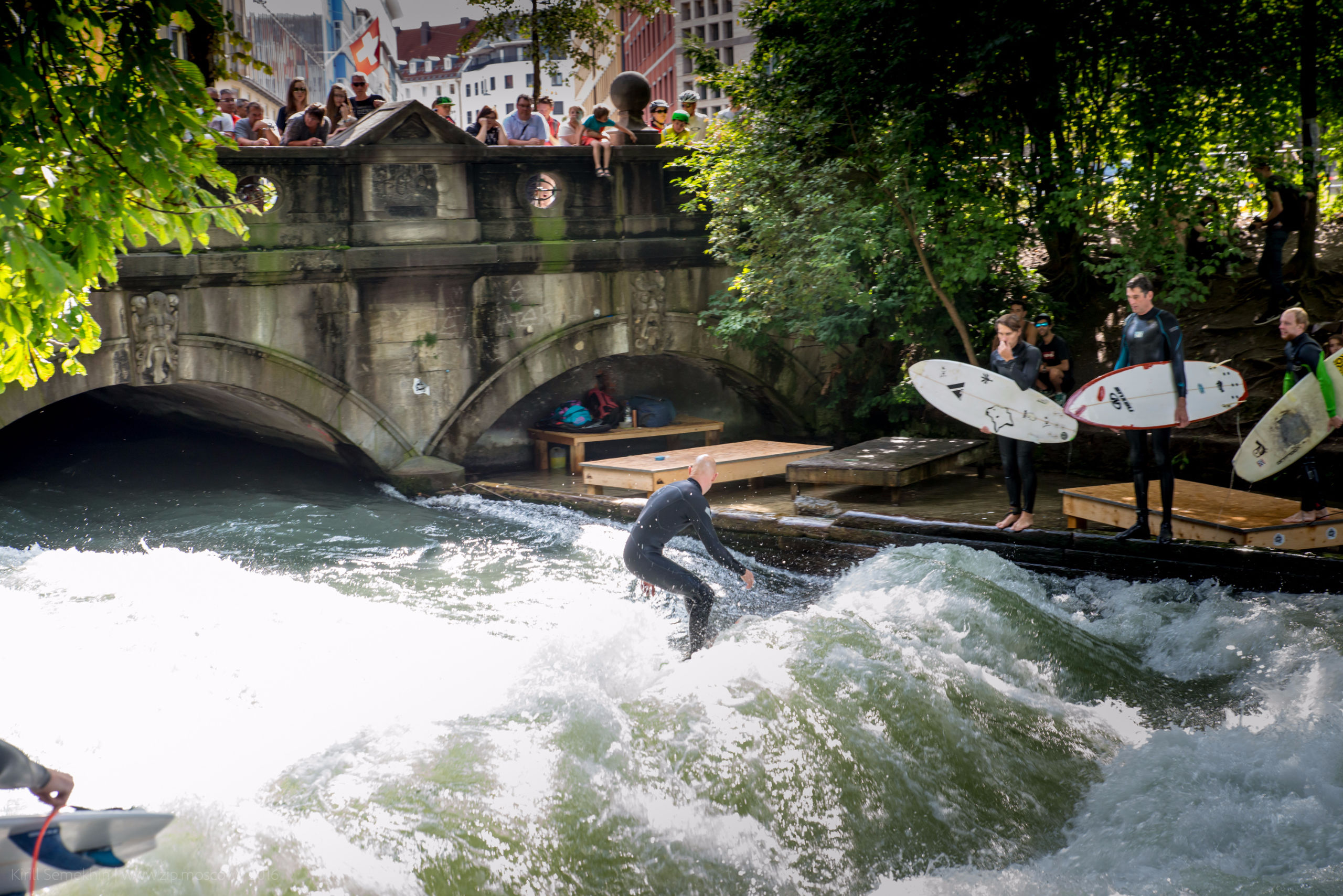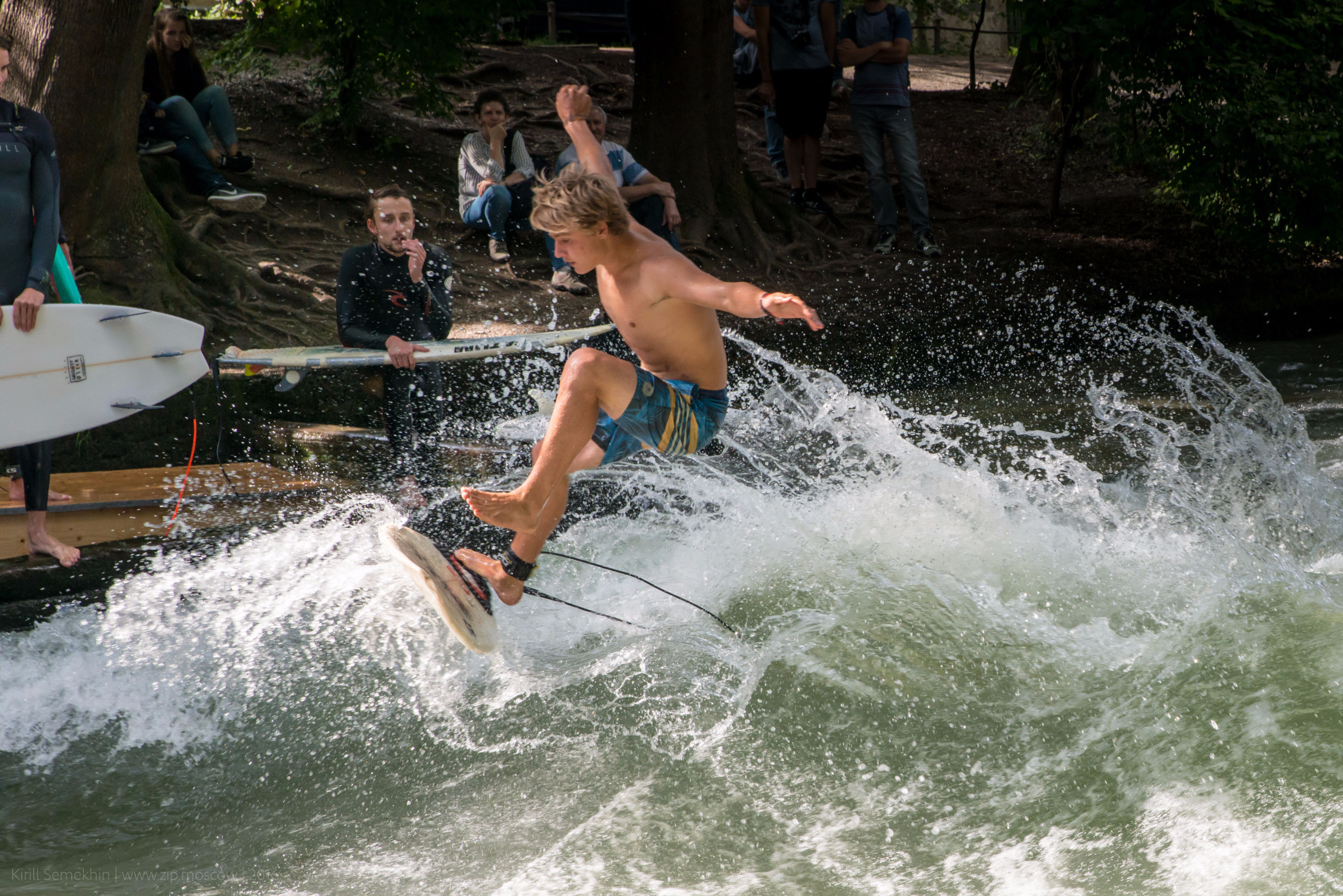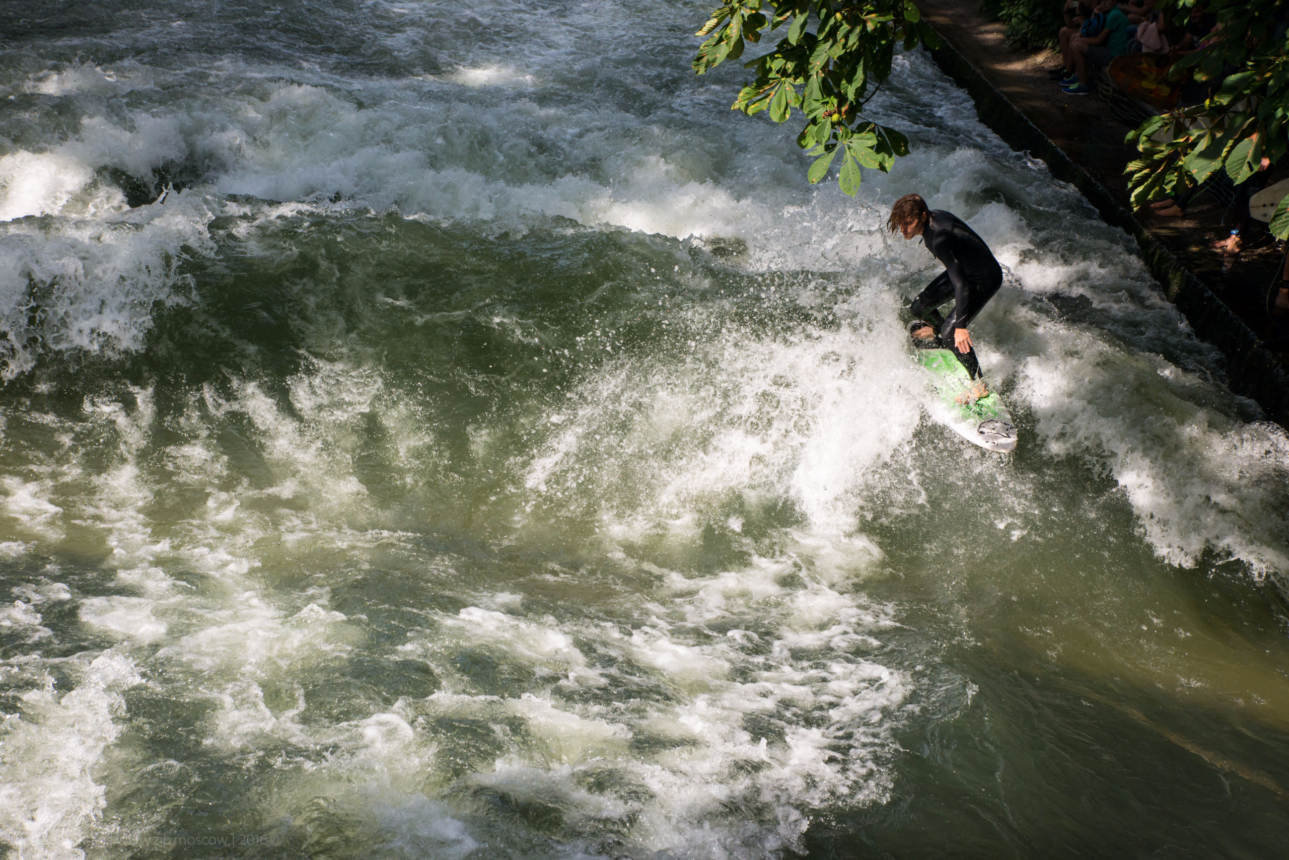 Т.к. течение очень быстрое — то ребята благодаря тому, что закрепили на дне специальную конструкцию получили отличную стоячую волну. Высотой около метра. Сейчас не могу найти источник, но ранее, я читал, что власти города специально перевели этот ручей с баланса Федеральной земли Баварии на баланс города, приняли какие то поправки и теперь там «каталка» легально! А могли б разогнать бы бездельников, как например…